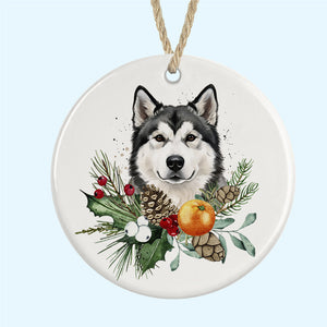 Unique and Personal Design: The ornament features a Alaskan Malamute with Christmas wreath design, making it a perfect keepsake.