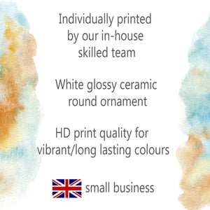 Individually Printed in Milton Keynes, UK: Each ornament is individually printed to the highest standards of colour and quality by our in-house skilled team in Milton Keynes, UK, ensuring exceptional attention to detail.