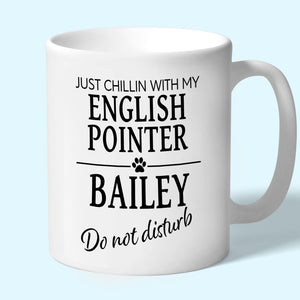 Personalised with the dogs name. A unique design mug for english pointer owners printed on both sides so the design can be enjoyed whichever way you hold it.