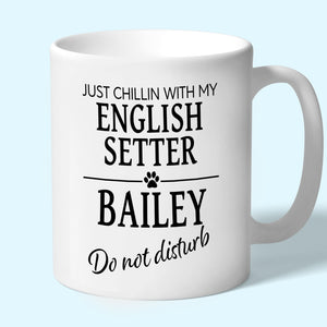 Personalised with the dogs name. A unique design mug for english setter owners printed on both sides so the design can be enjoyed whichever way you hold it.