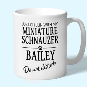 Personalised with the dogs name. A unique design mug for miniature schnauzer owners printed on both sides so the design can be enjoyed whichever way you hold it.