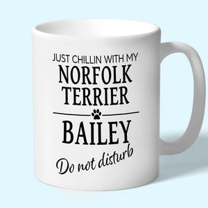 Personalised with the dogs name. A unique design mug for norfolk terrier owners printed on both sides so the design can be enjoyed whichever way you hold it.