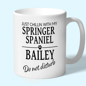 Personalised with the dogs name. A unique design mug for springer spaniel owners printed on both sides so the design can be enjoyed whichever way you hold it.