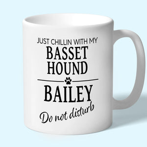 Personalised with the dogs name.  A unique design mug for basset hound owners printed on both sides so the design can be enjoyed whichever way you hold it.