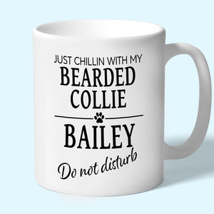 Personalised with the dogs name. A unique design mug for bearded collie owners printed on both sides so the design can be enjoyed whichever way you hold it.