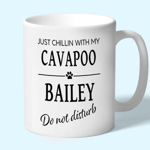 Personalised with the dogs name.  A unique design mug for cavapoo owners printed on both sides so the design can be enjoyed whichever way you hold it.