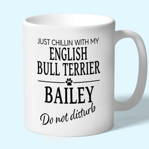 Personalised with the dogs name. A unique design mug for english bull terrier owners printed on both sides so the design can be enjoyed whichever way you hold it.