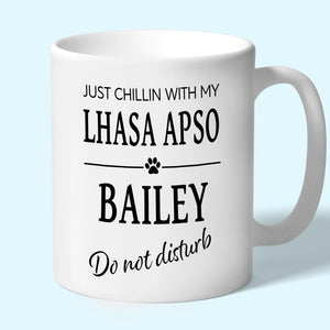 Personalised with the dogs name. A unique design mug for llhasa apso owners printed on both sides so the design can be enjoyed whichever way you hold it.